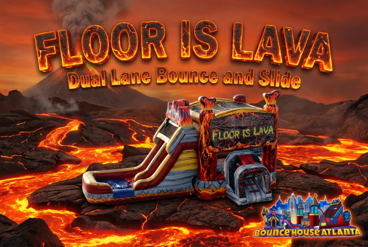 We all have seen the hit TV show The Floor is Lava!  We have now brought it to life with dual slides off the awesome bounce house with tons of obstacles to jump to and from.  This new bounce and slide combo will be perfect for any school, backyard party, church or corporate event!  It's vibrant colors and unique and detailed design will get everyone's attention!