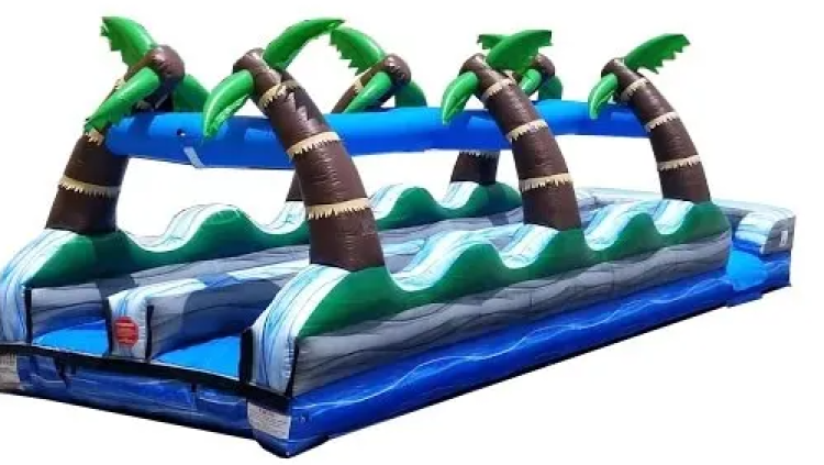 - Ready to bring the island energy? Book the 35' Tropical Palms Dual Lane Slip N Slide today—prime summer dates go fast!